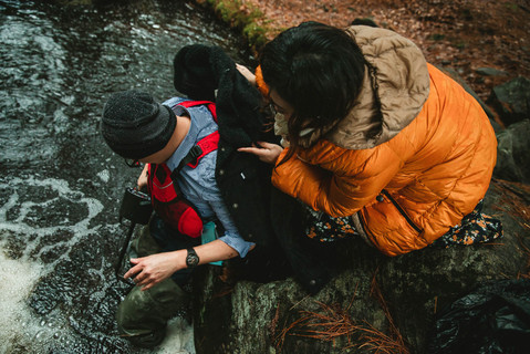 We had tried to reach into the water to find the whereabouts of the ring, but the rapids and near-zero visibility made searching extremely difficult. After the Khai make a few phone calls, he went to a nearby Canadian Tire to buy a metal detector. Jeri and Khai bought the tools and returned to prepare to continue searching for the ring. At that moment I suddenly felt that this was a very memorable moment, so I picked up the camera and recorded the following special “engagement Photos”!
